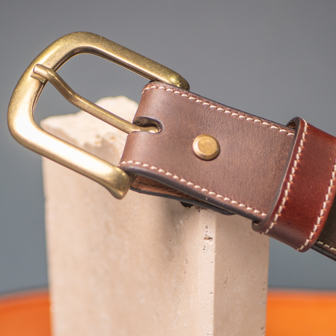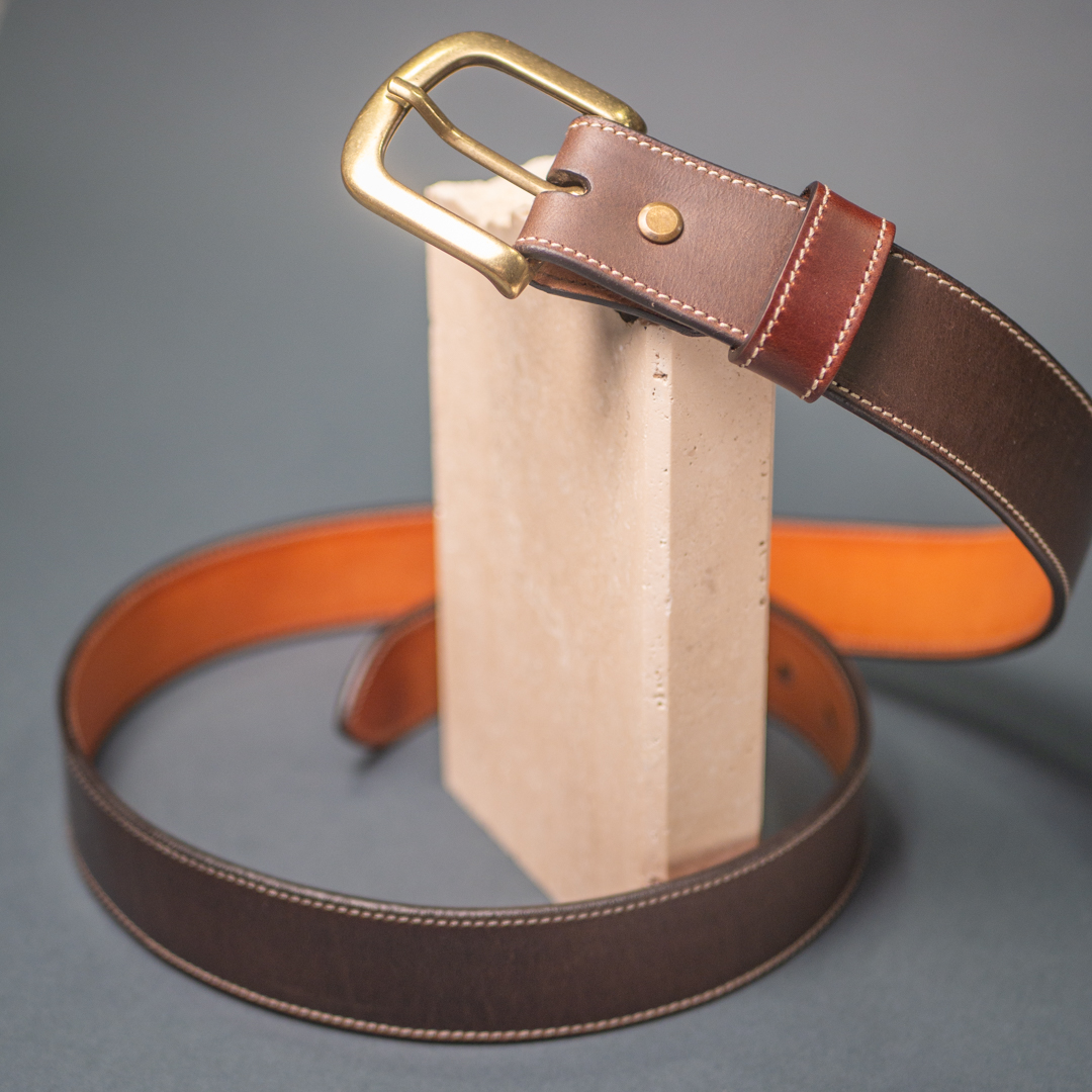 La più classica delle cinte. Una striscia di cuoio toscano resistente e che il passare del tempo renderà sempre più bella.